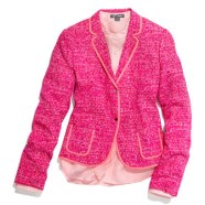 The dress reminds me of those flattering super popular Victoria Beckham dresses that I think every celebrity has worn. The jacket brings back memories of the classic Chanel jackets in such a beautiful color.